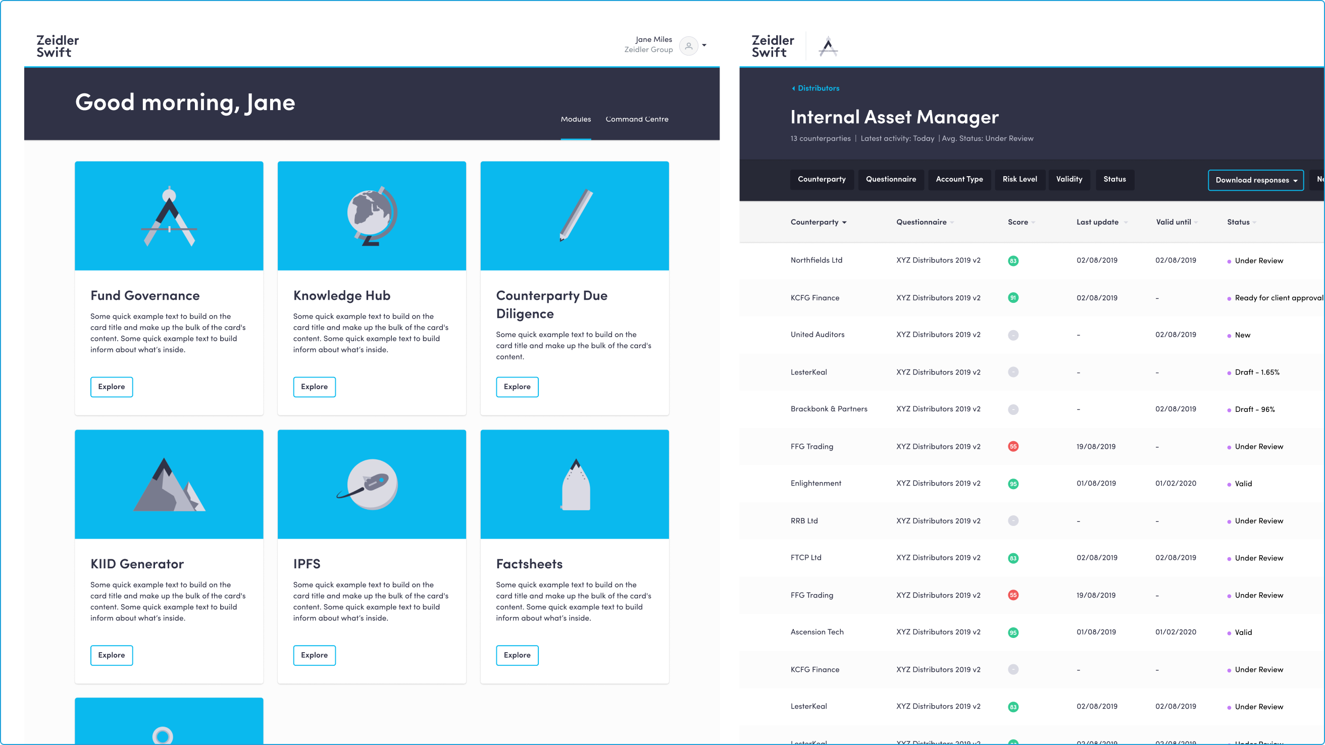 We supported Zeidler Group’s digital service platform for over 4 years, helping them to launch a suite of interconnected products that assist with every aspect of fund management law. This included product missions to design new modules and embedded development expertise in support of their in-house tech team.