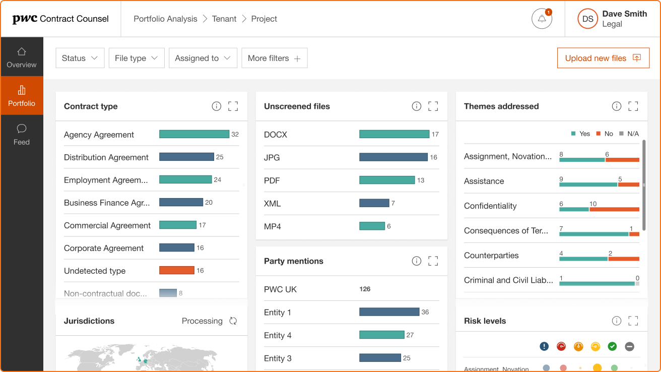 Large in-house legal teams manage vast numbers of contracts within multiple portfolios. Historically, ascertaining their risk exposure is a time consuming and expensive process. We collaborated with PwC to create an AI-powered contract review solution that’s easy to use and understand. Starting from scratch, we established user needs, then designed, prototyped and user tested Contract Counsel. Post-launch we provided ongoing design support to their in-house product and development teams.